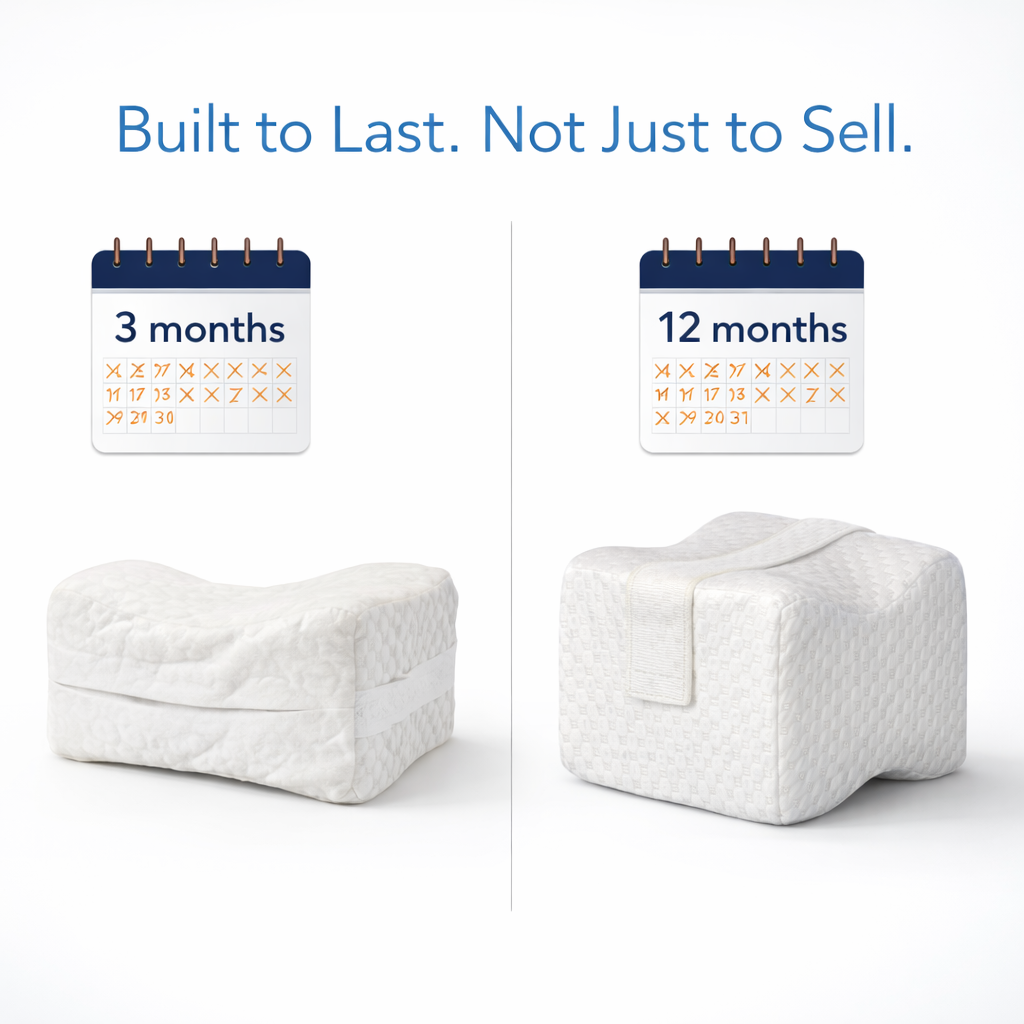 Cheap knee pillows go flat within weeks—that's why customers say they "used to" have knee pillows. Our high-density memory foam is designed to stay firm and supportive night after night, year after year.