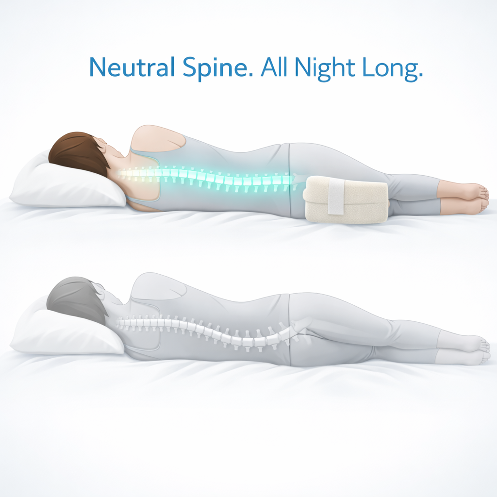 Side sleeping shouldn't mean waking up twisted and sore. This pillow fills the gap between your knees and hips, keeping your entire spine neutral and aligned through the night. Unlike stacking regular pillows (which creates pressure points), the engineered shape distributes your weight evenly. Customers with sciatica, lower back pain, and post-surgery recovery report waking up loose and pain-free for the first time in years.