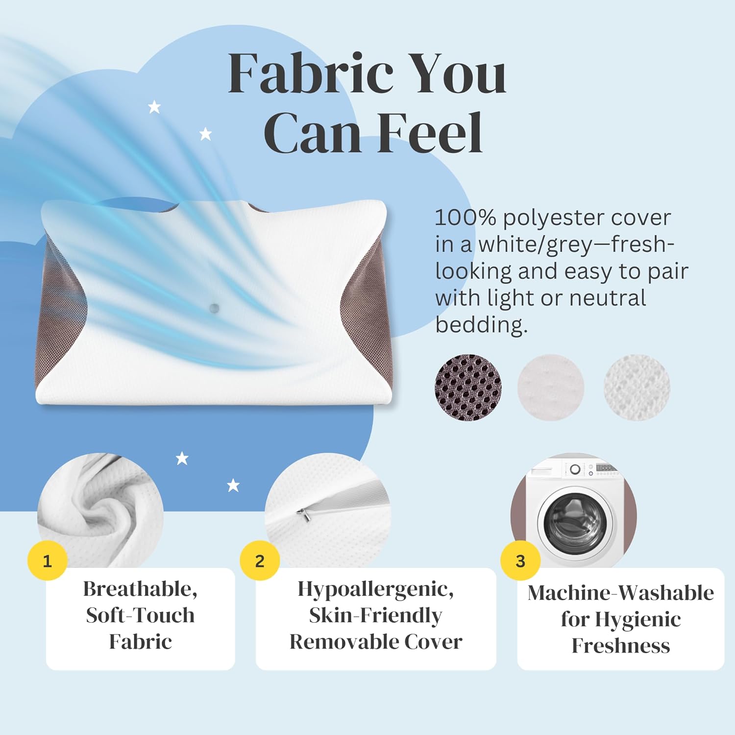 • Removable, machine-washable cotton-blend cover